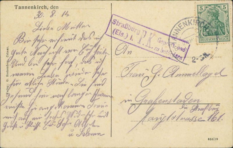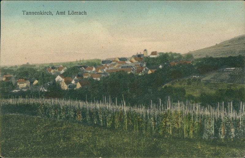 Alte Ansichtskarte aus Kandern-Tannenkirch, gelaufen am 30.08.1914 von Tannenkirch nach Grafenstaden.