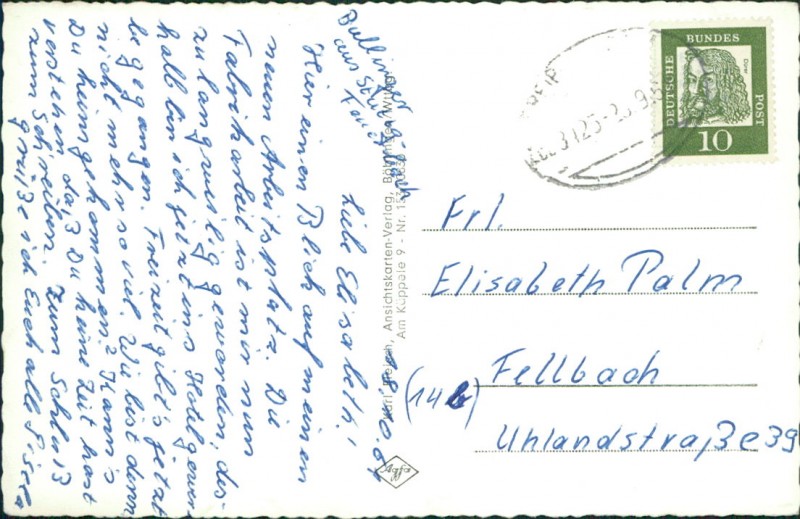| Verlag | Karl Fleisch, Ansichtskarten-Verlag, Böblingen/Wttbg., Am Käppele 9 |