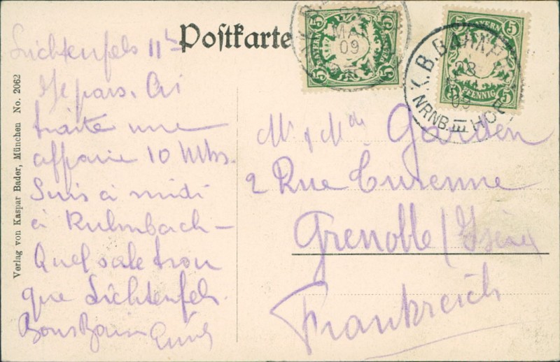 Alte Ansichtskarte aus Lichtenfels, gelaufen am 28.03.1909.
