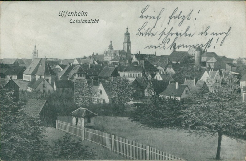 Alte Ansichtskarte aus Uffenheim, gelaufen am 04.09.1908 von Uffenheim nach Metz-Sablon.