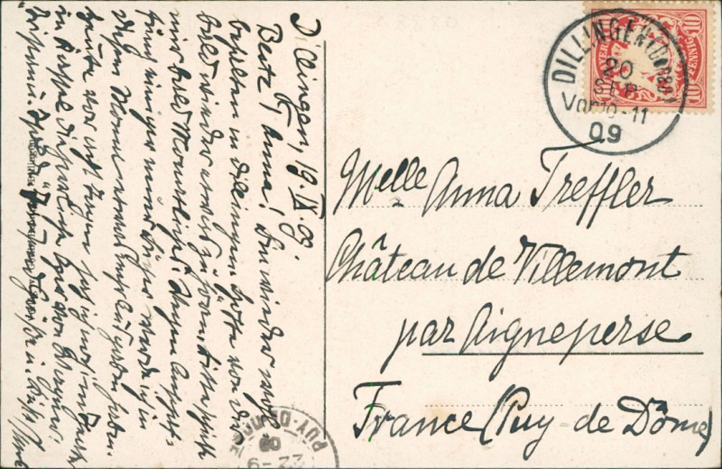 Alte Ansichtskarte aus Dillingen a.d.Donau, gelaufen am 20.09.1909.