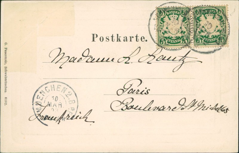 Alte Ansichtskarte aus Schwabmünchen, gelaufen um 1903 von Schwabmünchen nach Paris.