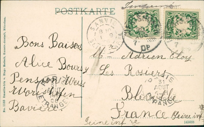 Alte Ansichtskarte aus Bad Wörishofen, gelaufen am 30.08.1908.