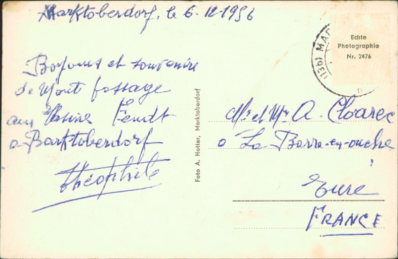Alte Ansichtskarte aus Marktoberdorf, gelaufen am 06.12.1956.