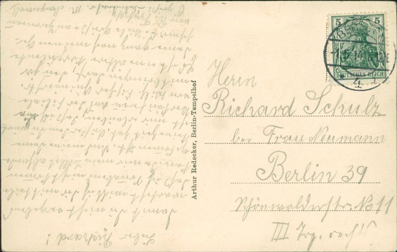 Alte Ansichtskarte aus Berlin, gelaufen am 01.05.1914 von Berlin nach Berlin 39.