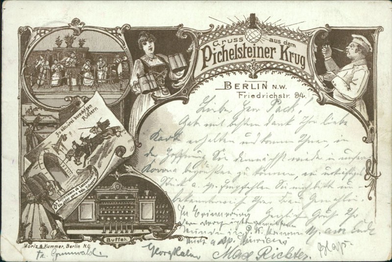 Alte Ansichtskarte aus Berlin, gelaufen am 23.09.1898 von Berlin S nach Letmathe. Ankunft in Letmathe am 23.09.1898.