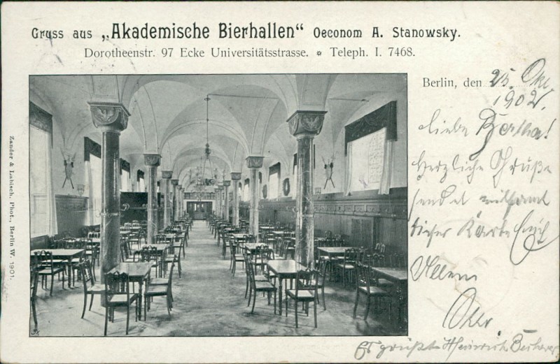 Alte Ansichtskarte aus Berlin, gelaufen am 26.10.1902 von Berlin nach Berlin. Ankunft in Berlin am 26.10.1902.