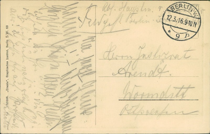 Alte Ansichtskarte aus Berlin, gelaufen am 12.03.1916.