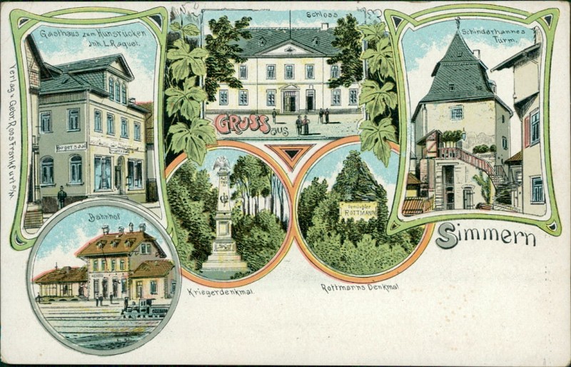 Gasthaus zum Hunsrücken, Bahnhof, Schloss, Kriegerdenkmal, Schinderhannes Turm
