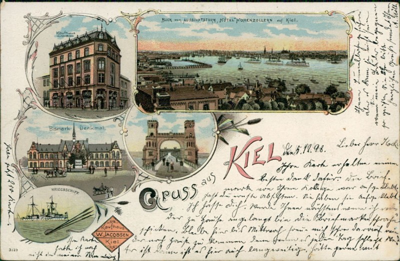 Alte Ansichtskarte aus Kiel, gelaufen um 1898.
