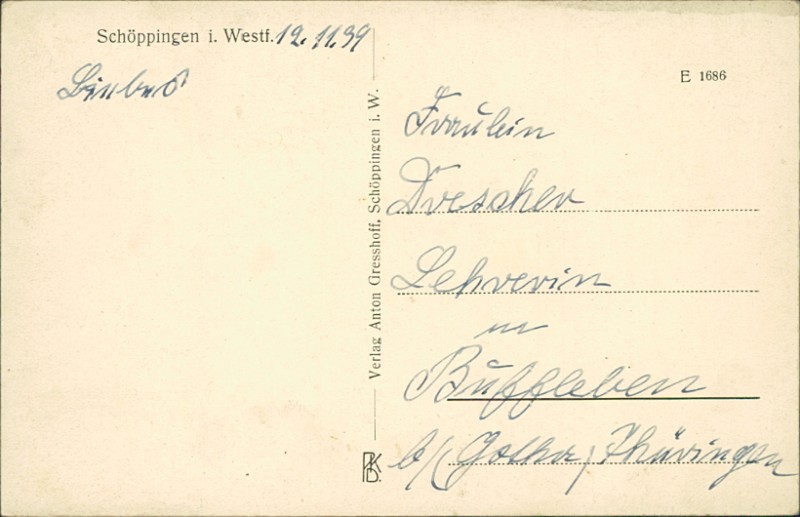 Alte Ansichtskarte aus Schöppingen, beschrieben am 12.11.1939.