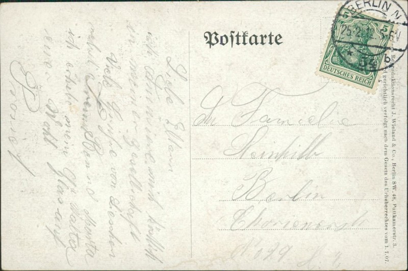 Alte Ansichtskarte aus Berlin, gelaufen am 25.02.1912 von Berlin N nach Berlin.