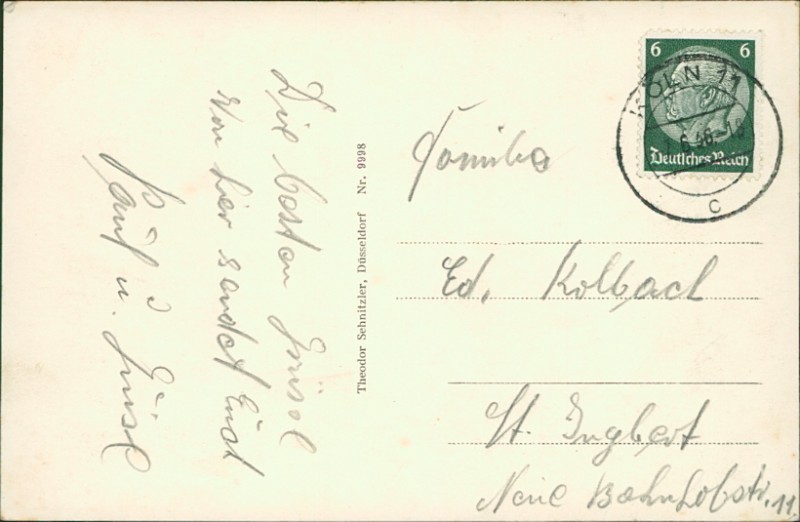 Alte Ansichtskarte aus Düsseldorf, gelaufen am 07.06.1936 von Köln nach St. Ingbert.
