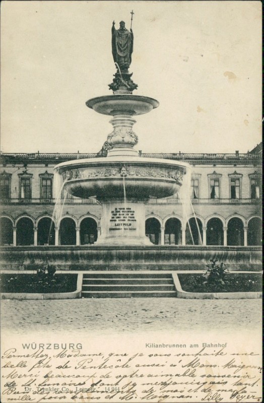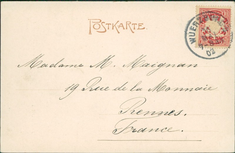 Alte Ansichtskarte aus Würzburg, gelaufen am 16.05.1902 von Wuerzburg nach Rennes.