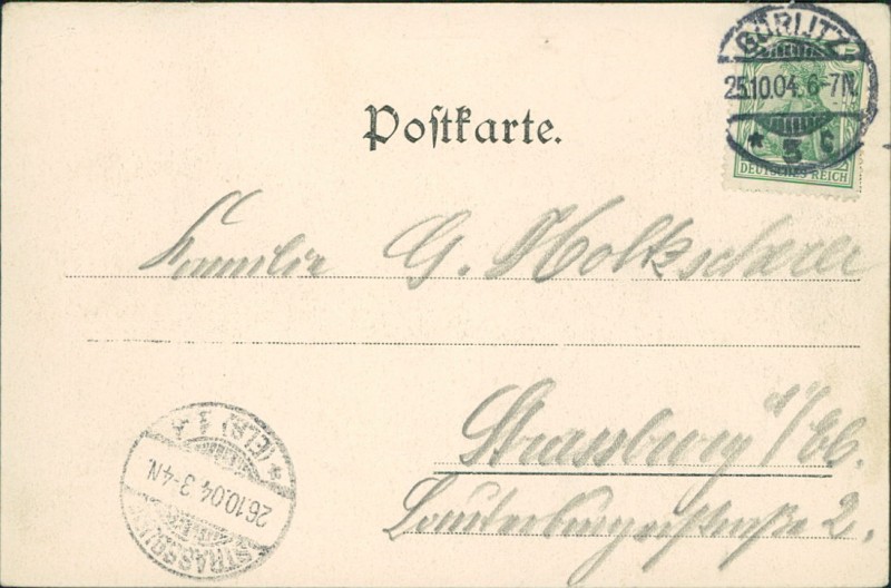 Alte Ansichtskarte aus Görlitz, gelaufen am 25.10.1904 von Görlitz nach Strassburg i/Els. Ankunft in Strassburg i/Els. am 26.10.1904.