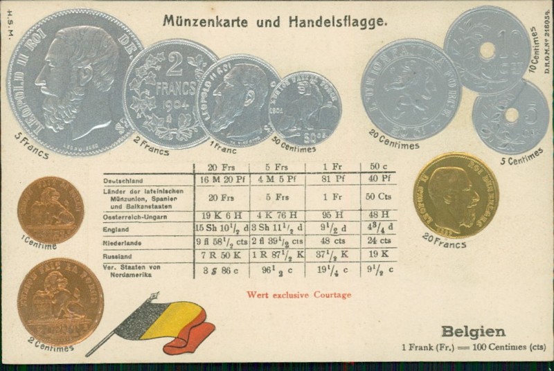 Münzen und Flagge auf Ansichtskarte / states coin card
