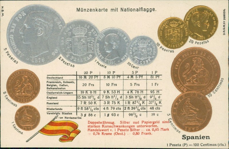 Münzenkarte und Nationalflagge / states coin card