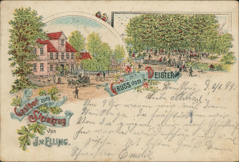 Alte Ansichtskarte aus Wennigsen (Deister), gelaufen am 02.06.1899 von Wennigsen nach Weetzen. Ankunft in Weetzen am 02.06.1899.