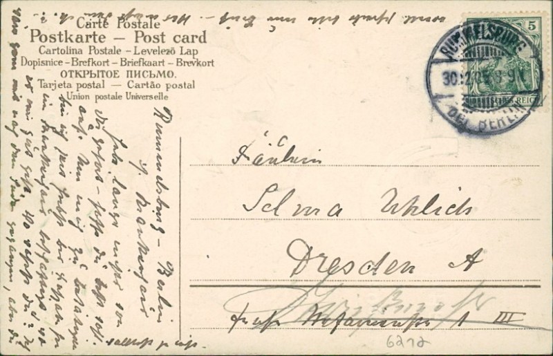 Alte Ansichtskarte, gelaufen am 30.12.1905 von Rummelsburg nach Dresden.
