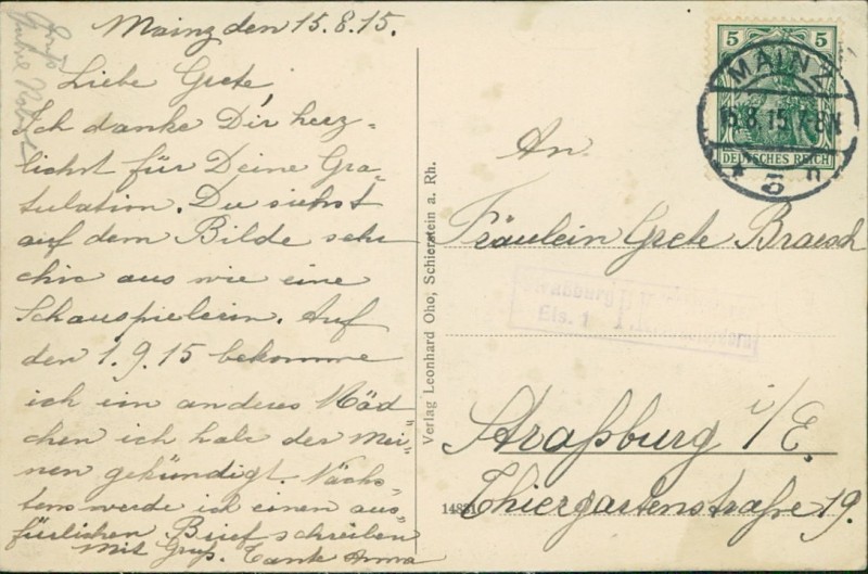 Alte Ansichtskarte aus Wiesbaden-Schierstein, gelaufen am 15.08.1915.
