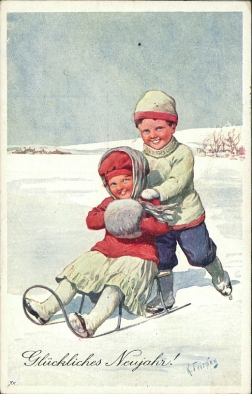 Alte Ansichtskarte, gelaufen am 30.12.1914 von Wien nach Hirschstetten.