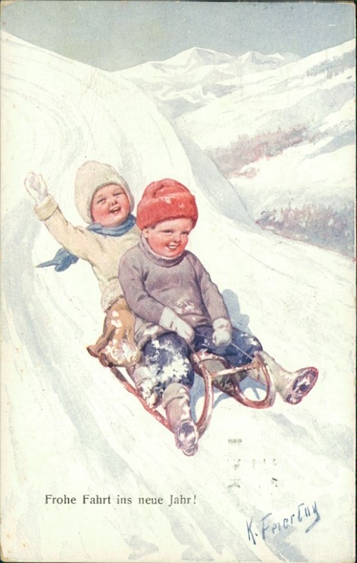 Kinder auf Schlitten