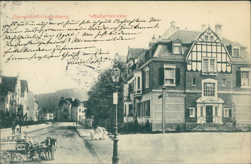 Alte Ansichtskarte aus Düsseldorf-Grafenberg, gelaufen am 29.12.1913 von Düsseldorf (Grafenberg) nach Paris.