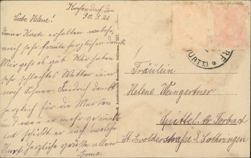 | Verlag | M. Ruoff, Ansichtskarten-Manufaktur, Heilbronn |